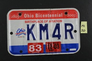 Vintage 2001 Ohio Motorcycle License Plate Km4r 2003 Sticker Mc20 Ebay